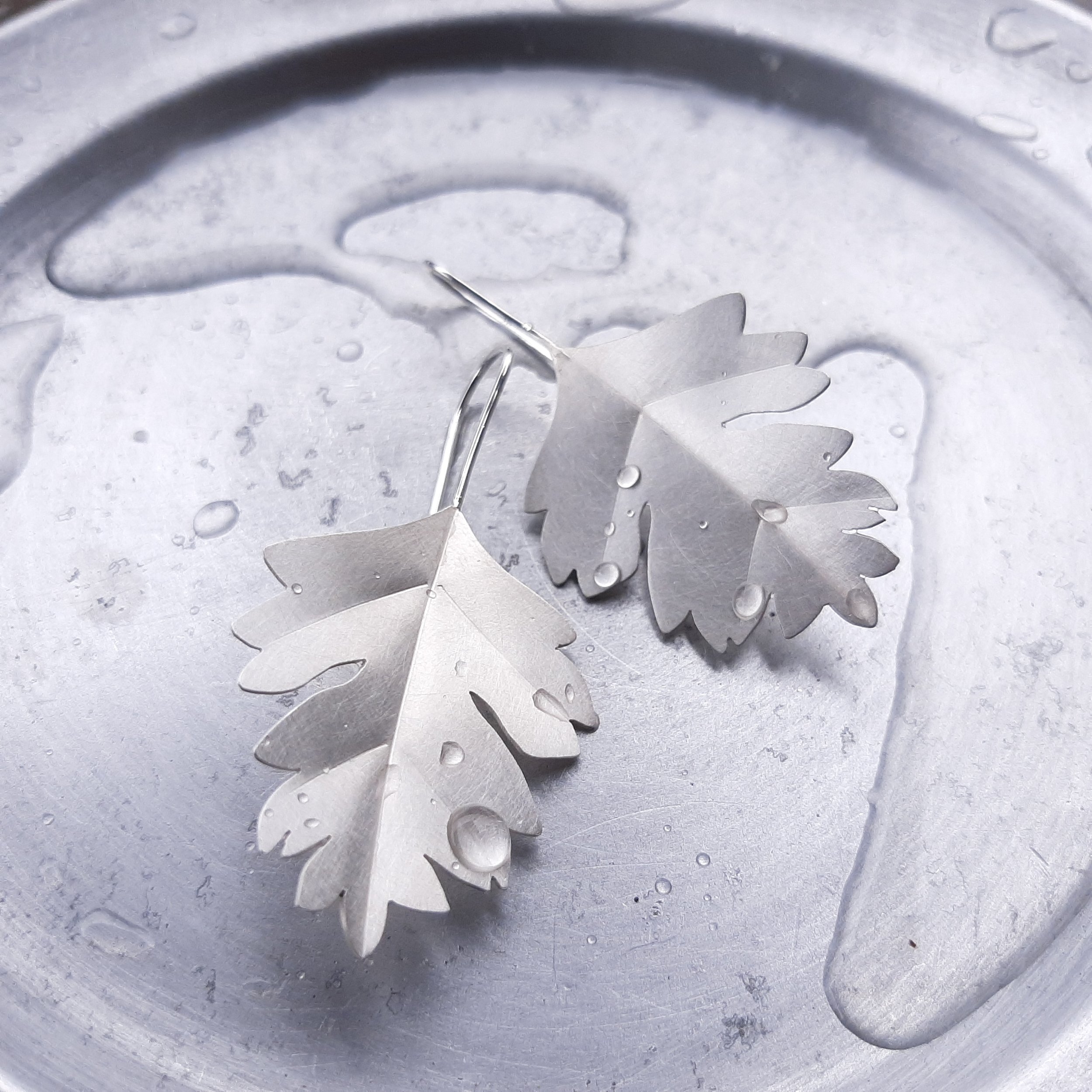 Blatt-Ohrhänger in Silber mattiert, Erle.